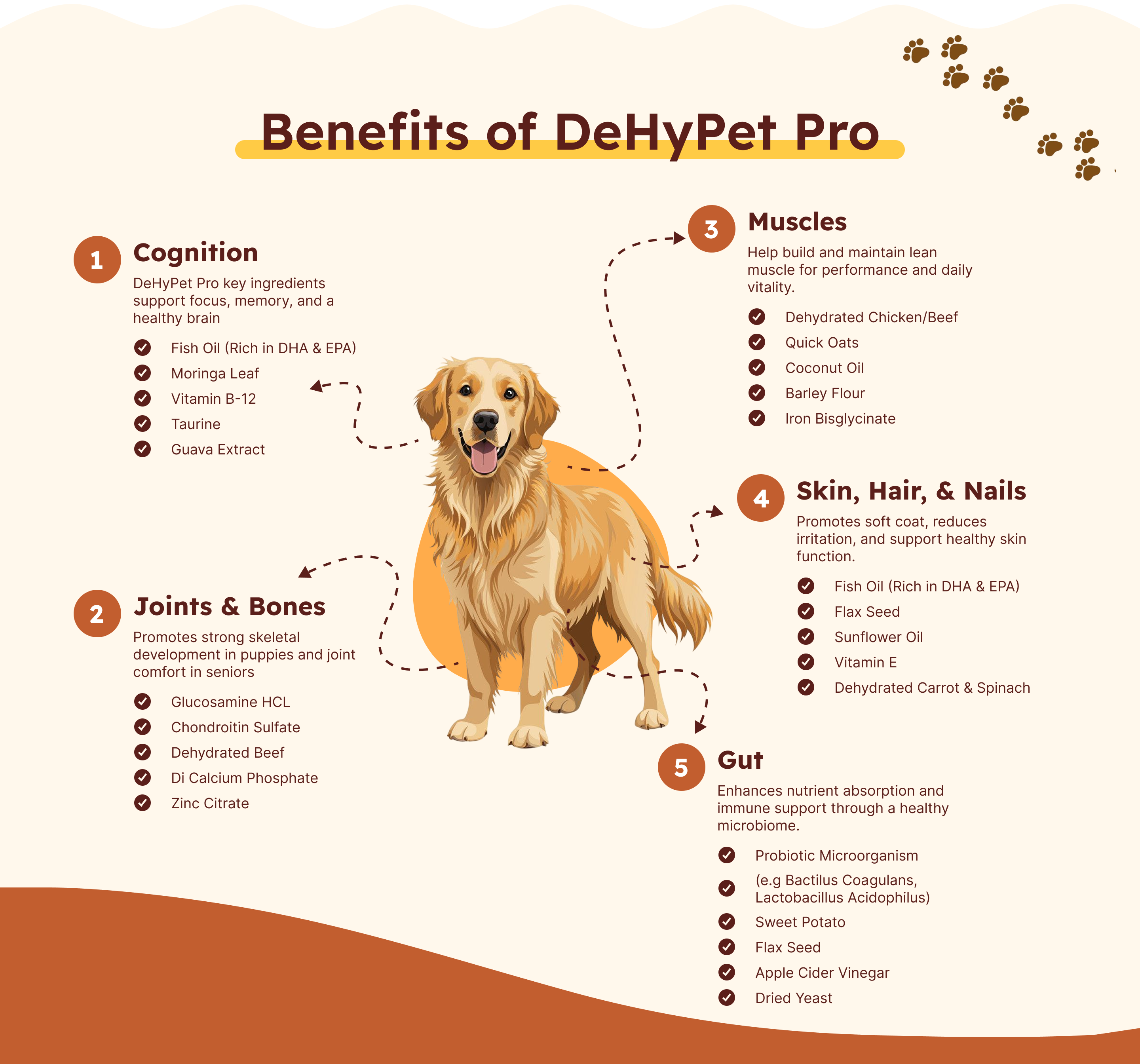 DeHyPet Pro is made with real, food-grade ingredients, packed with science-backed supplements and vitamins, and ready in minutes.