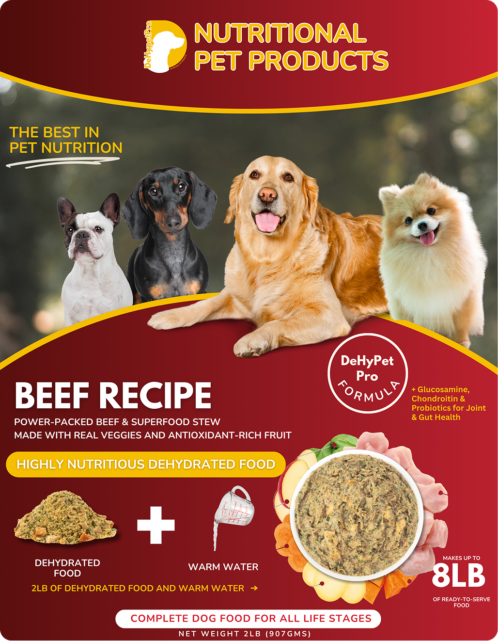 Yes — DeHyPet Pro meets the AAFCO nutrient profiles for all life stages, including large breed puppies. It contains a well-rounded mix of whole grains, meat, vegetables, oils, and functional supplements like glucosamine, chondroitin, taurine, and probiotics. Whether your dog is a growing pup or a senior, they’ll get complete nutrition in every bowl.